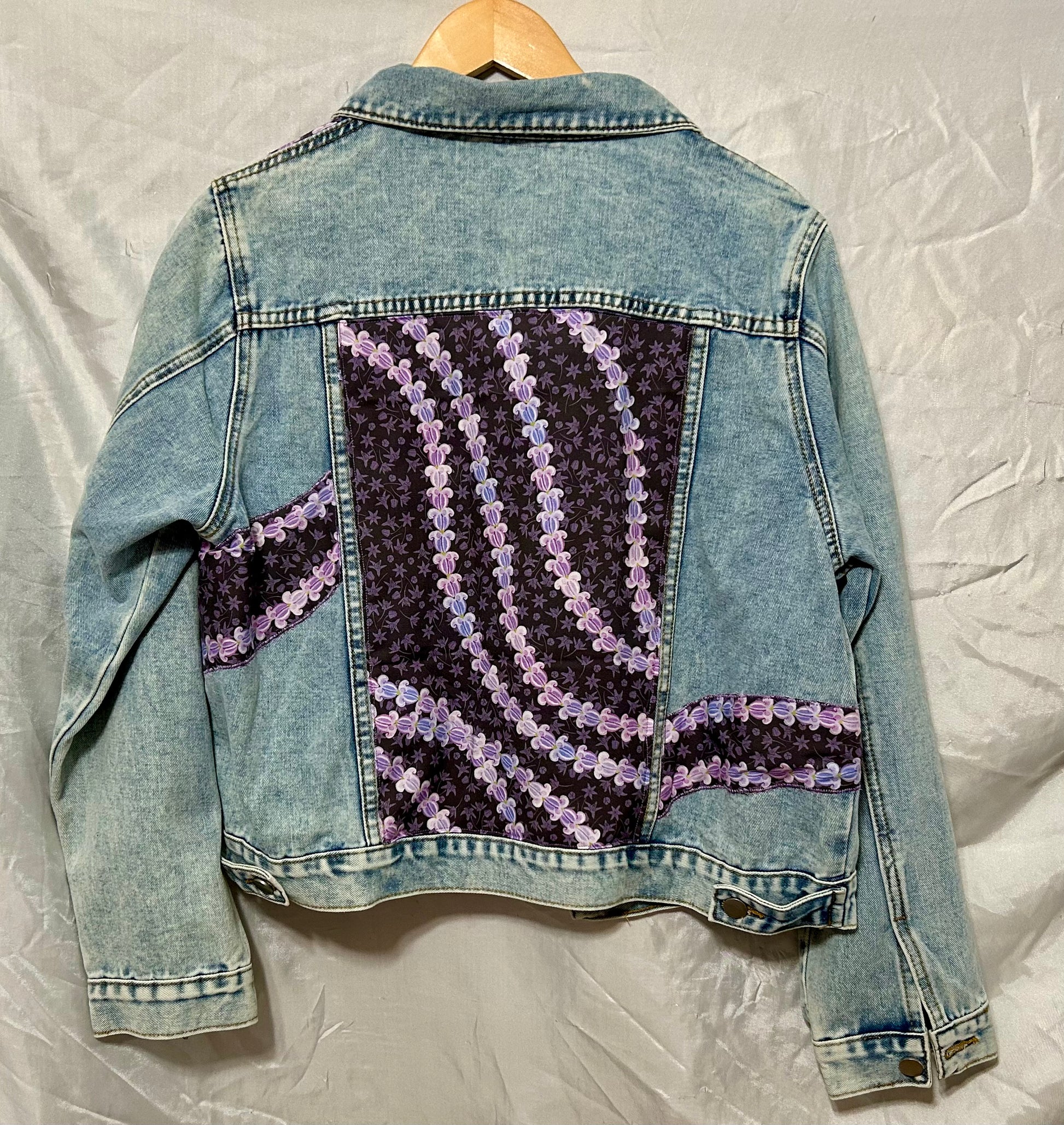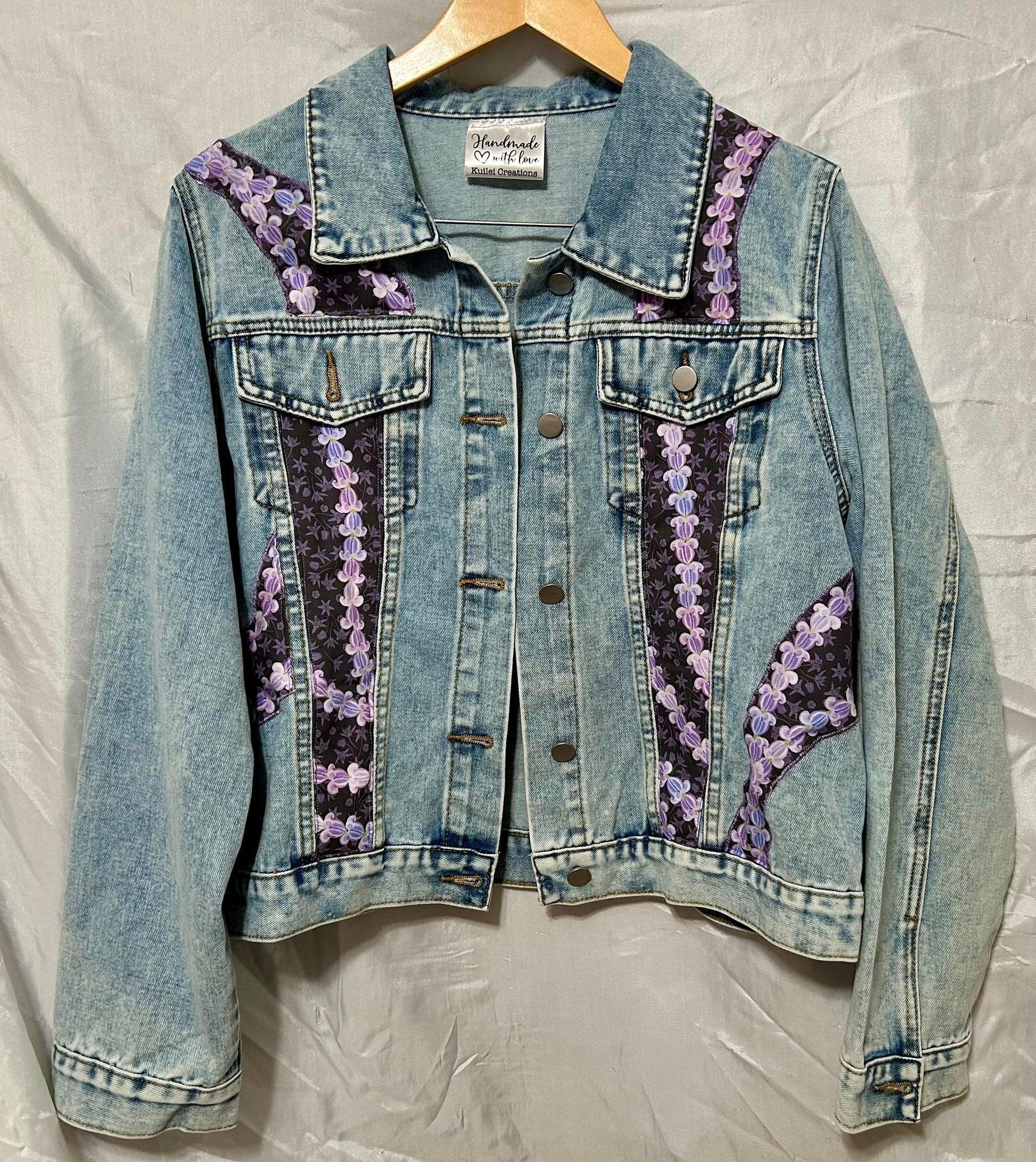 Denim Jacket with Crown Flower Lei Appliqué | Unique Original | Made in Hawai‘i