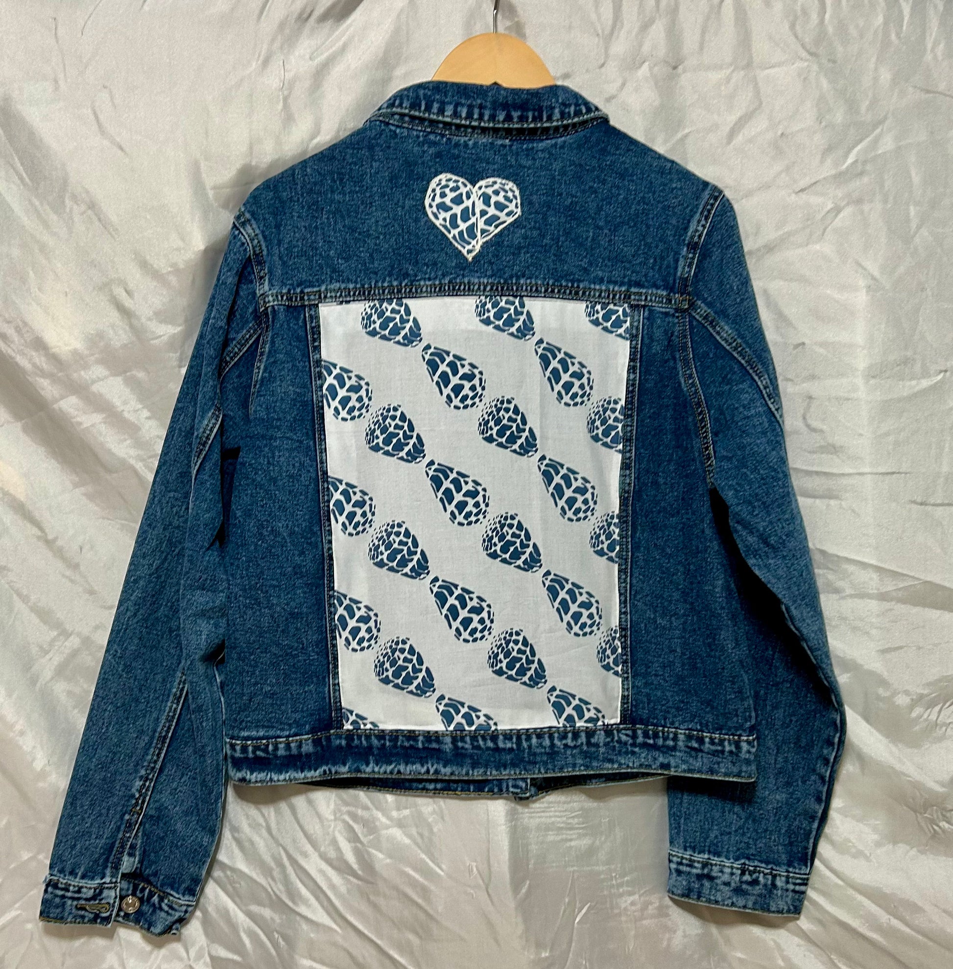 Handmade Denim Jacket – One of a Kind Shell Fabric & Appliqué Shell Heart (Size Medium)