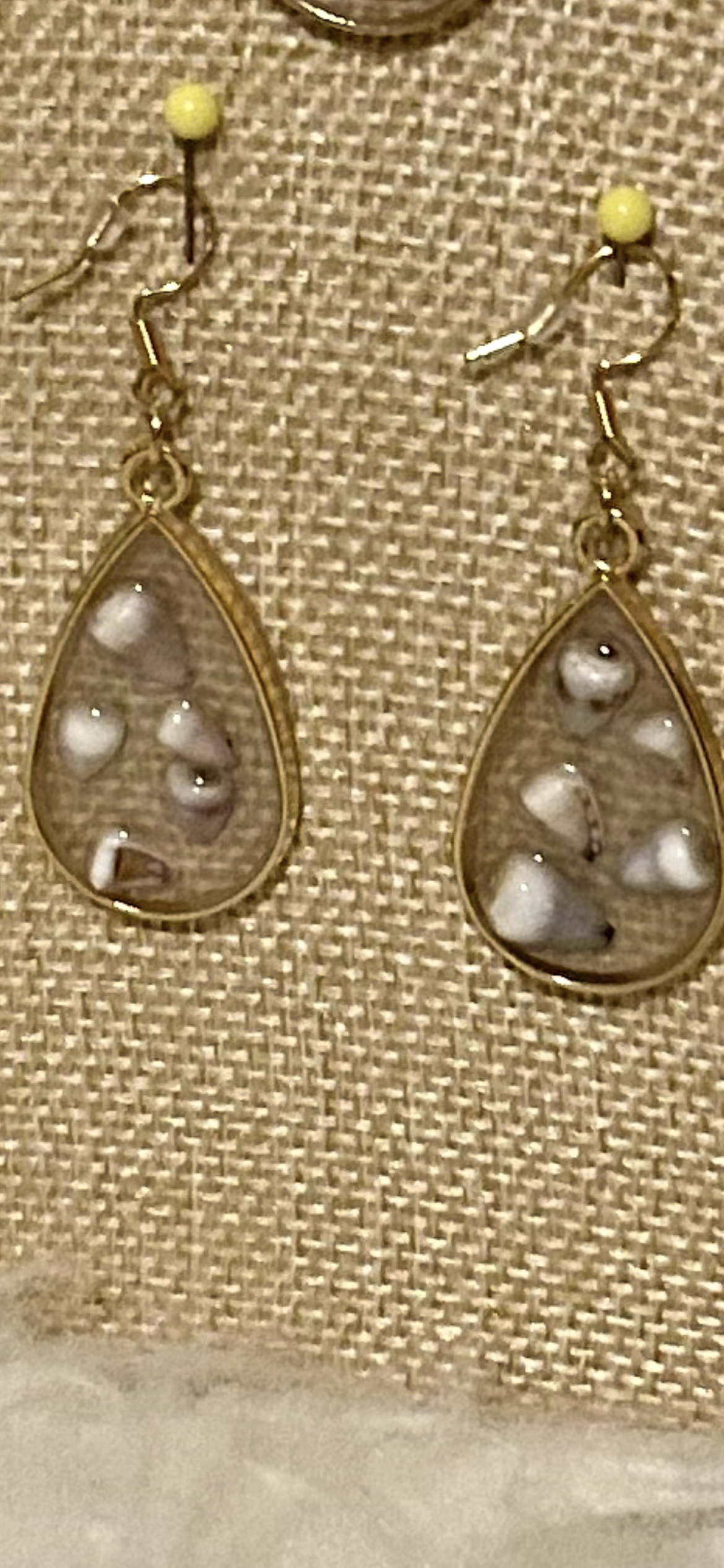 Beautiful handpicked shells from the shores of West Oahu. Tiny purple cone shells set in resin bezel setting. 14 K gold filled and PvD hypoallergenic.