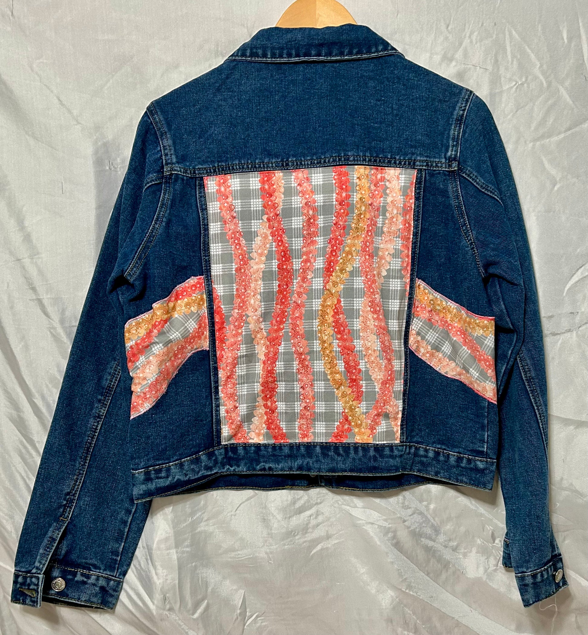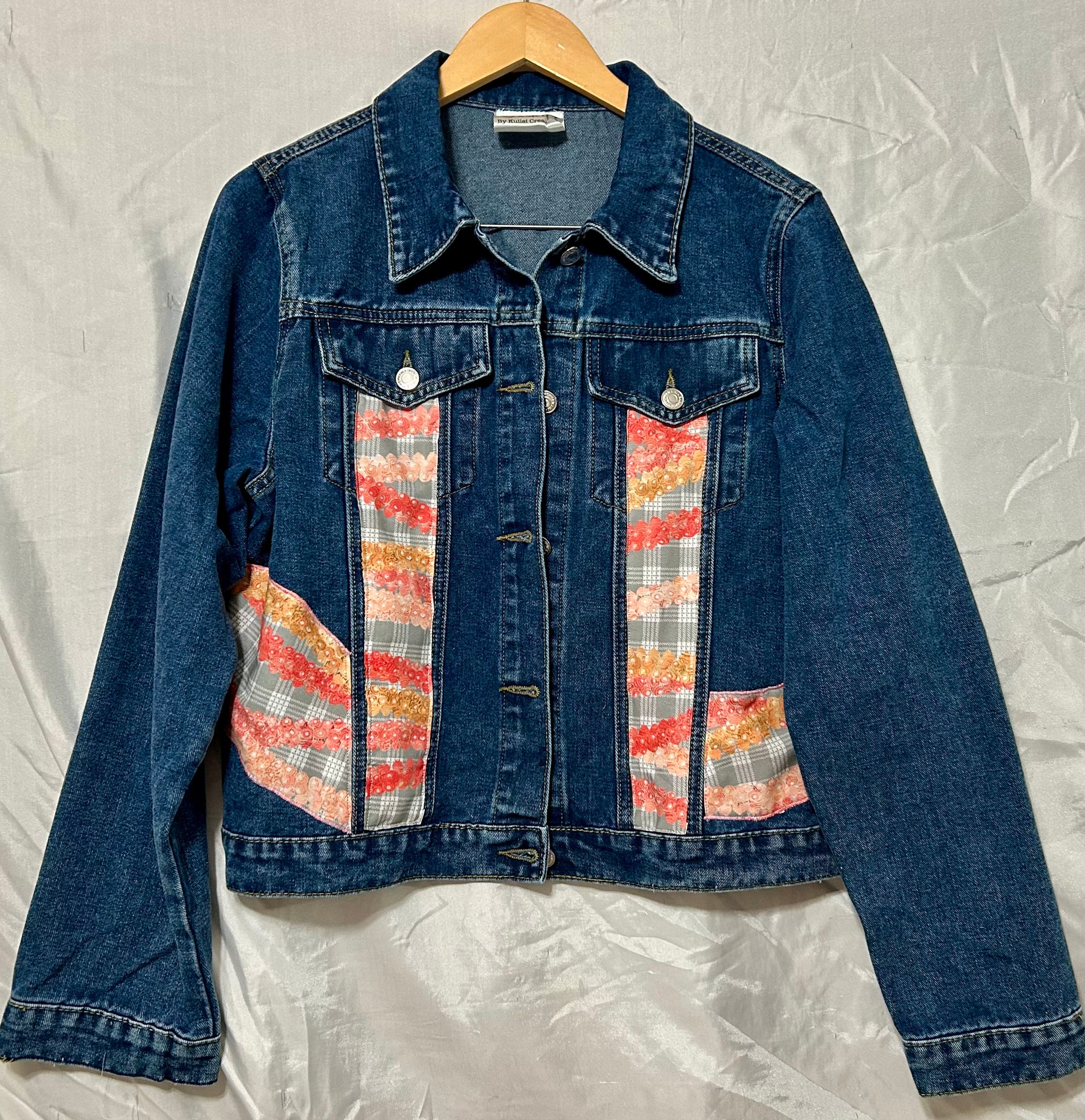 Handmade Wash Denim Jacket – One of a Kind Fabric & Appliqué Palaka Ni'ihau Shells Lei Details (Size Large)
