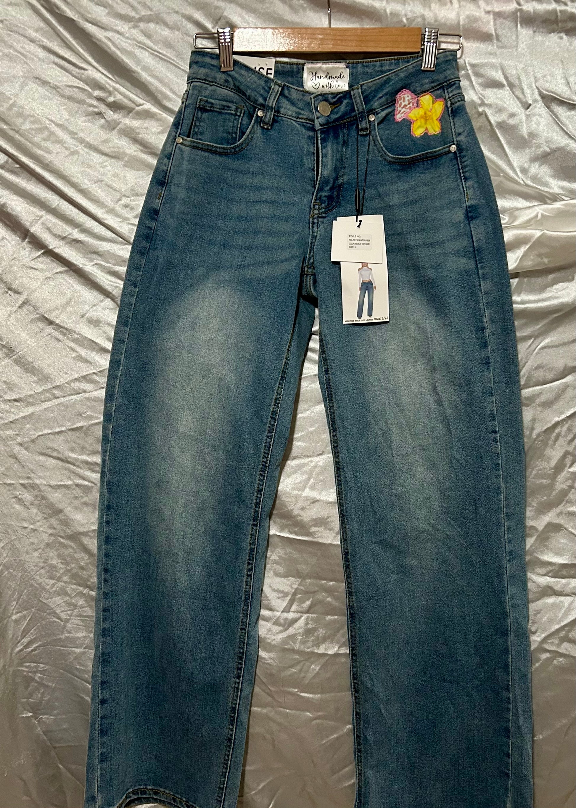 Mid rise wide leg size 3 one of a kind jeans
