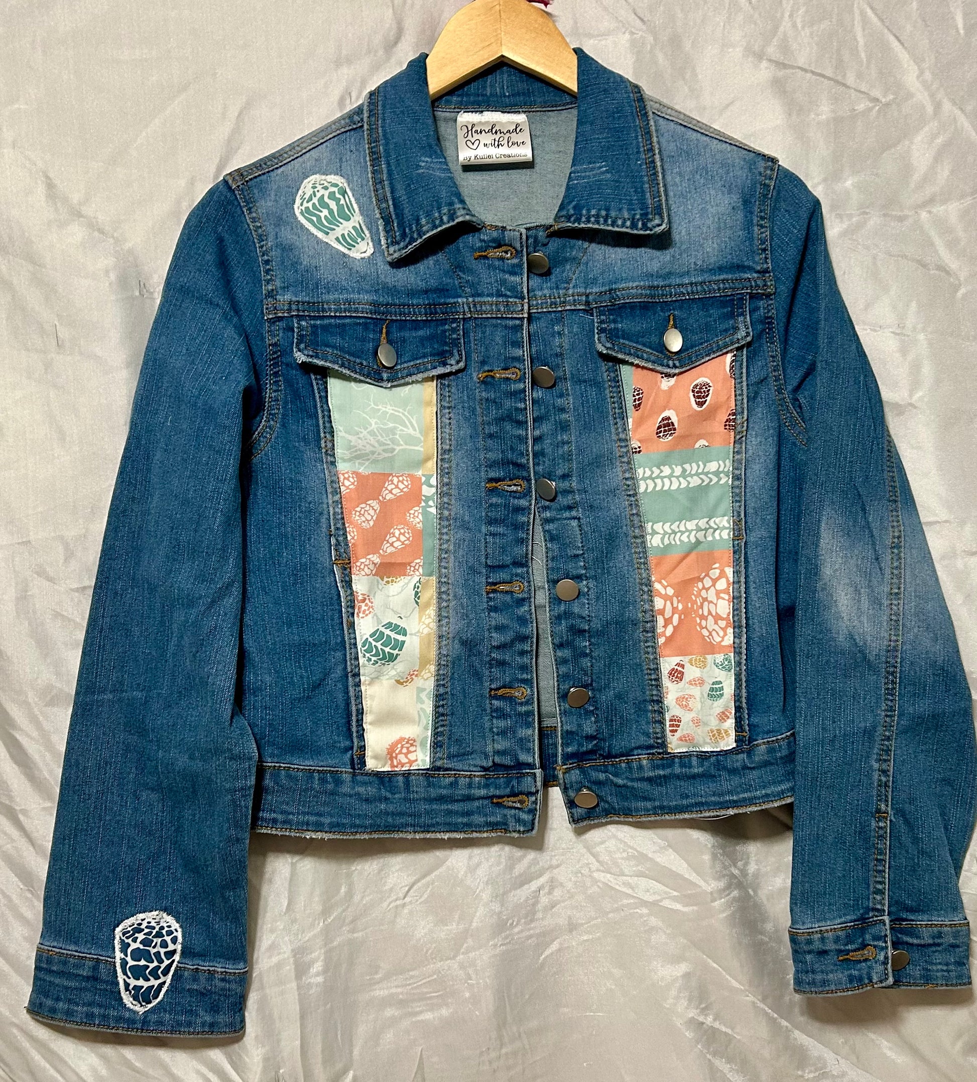 Handmade Denim Jacket – One of a Kind Shell Fabric & Appliqué Shells (Size Medium)